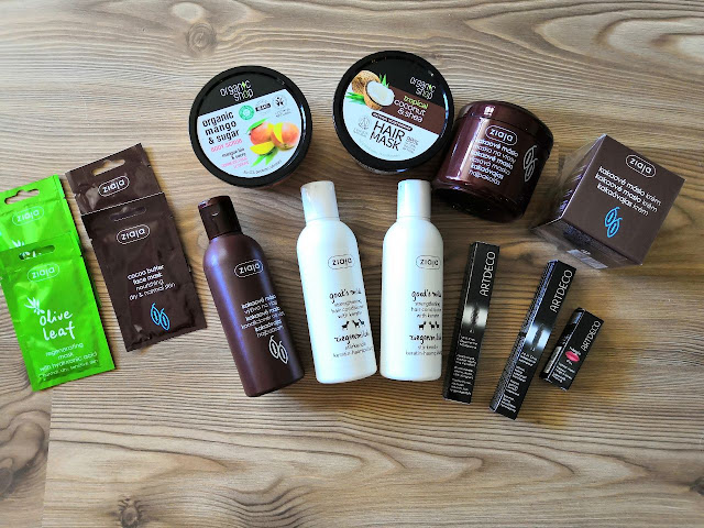 Sitten vielä muutama Ziaja. En ole tätä kaakosarjaa ennen nähnyt, joten en tiedä mahtaako kyseessä olla uutuus. Vasemmalla oleva purkki on kaakaovoi hiusnaamio. Naamio korjaa ja vahvistaa hiusta samalla kosteuttaen. Ja ajatella että tämä 200ml purkki maksoi vain 3 euroa! Tämä on oikea shoppailijan unelma, kun löytää hyviä tuotteita näin edullisesti.