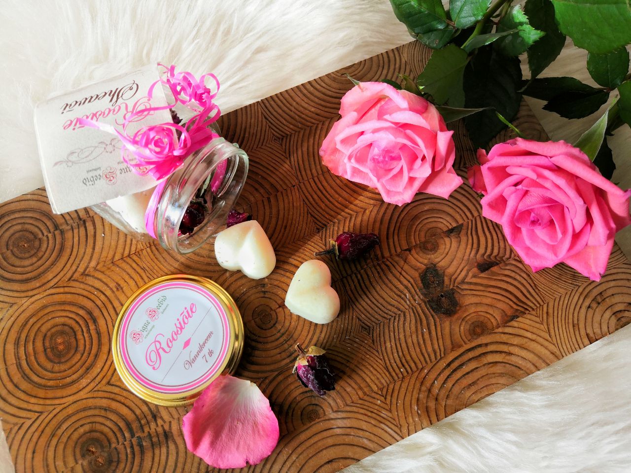 Tässä on kaunein kylpytuote, mitä olen ikinä käyttänyt. Suloiset sydämen muotoiset kylpyvoidepalat on pakattu lasiseen purkkiin kuivattujen ruusunnuppujen kanssa, mikä tekee tästä mahtavan lahjaidean tai ihastuttavan hemmottelutuotteen juuri sinulle itsellesi! Yhden sheavoisydämen voi pudottaa kylpyveteen tai puolikkaan sydämen voi hieroa iholle suihkun aikana. Kylpysydän sisältää mm. sitruunaruohoa, sheavoita, kaakaovoita ja Ylang-ylangia sekä runsaasti ihoa hoitavia vitamiineja. Täydellinen pakkaus vaikka kuusen alle sellaisenaan.