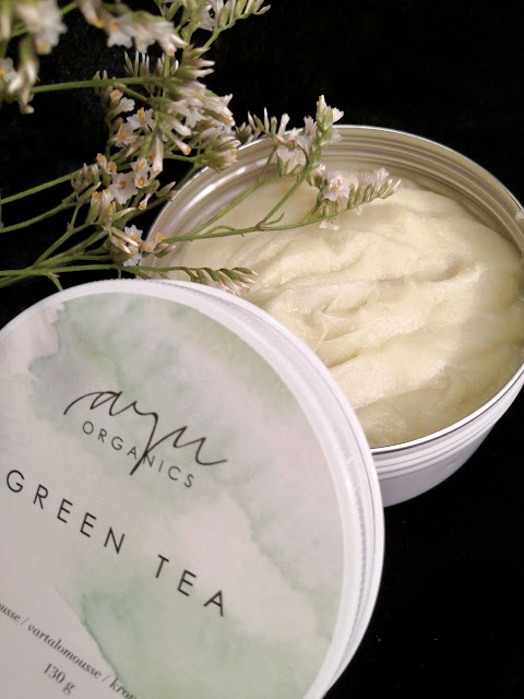 En olisi uskonut vielä vuosi sitten, etta rakastun vartalovoiteisiin. Niin on kuitenkin päässyt käymään ja yksi parhaimmista testaamistani vartalovoiteista on tämä Ayu organics green tea vartalomousse. Voide on vedetön ja siksi hiukan vaseliinimaista ja tuhtia, mutta kun sen imeyttää suihkun jälkeen valmiiksi hiukan kostealle iholle, niin lopputulos on täydellinen. Tuoksu on aivan ihanan huumaava trooppinen ja vihreä tee. Tämä voide on todellinen tähtituote.