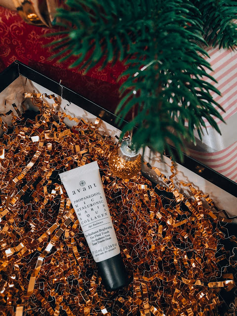 Boksin toinen henkilökohtaisesti kiinnostava tuote oli Avantin Pro radiance brightening eye final touch silmänympärysvoide. Avantin tuotteethan on ihan huippu hintavia, joten näitä on kiva aina saada bokseista testiin. Kasvovoiteista olen pitänyt kovasti, joten testaan nyt ensimmäisen kerran myös tätä sy-voidetta erittäin suurella mielenkiinnolla. Voiteessa on hyaluronihappoa ja merivettä, joka antaa pitkäkestoisen kosteutuksen sekä antaa nuoremman ilmeen poistamalla tummuutta ja turvotusta.