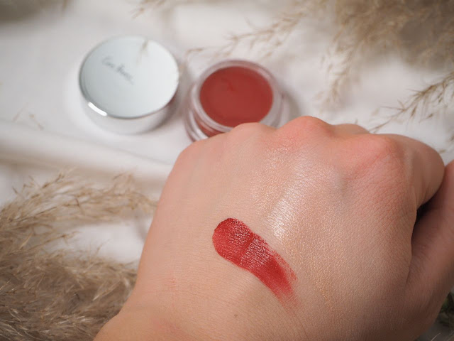 Nykyään näitä monikäyttöisiä multituotteita löytyy lähes jokaiselta brändiltä, mikä on ihan kivakin juttu. Tässäkin tuote, jota voi käyttää sekä huulilla että poskilla. Ja miksipä ei, säästyy samalla rahaa sekä tilaa meikkipussissa. Tässä on aivan super ihana pakkaus, sillä tuote on pakattu pieneen söpöön lasipurkkiin ja kansi on kuin peili, joten tuotteen levittäminen huulille sopii käden käänteessä kannen kautta peilaillessa.