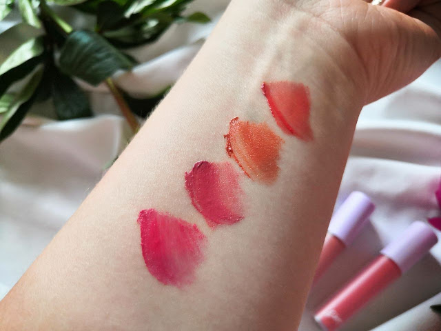 No nyt uudessa lähetyksessä sain kevään uutuuskokoelmasta kaksi luomiväripalettia sekä neljä eri sävyistä lip tintiä. Nuo huulilakat ovat kosteuttavia kuin huulikiilto, pehmeitä kuin huulirasva ja pigmenttisiä kuin huulipuna. Sävyt on upeita ja huulilakat tuoksuu makeille hedelmille ja marjoille.