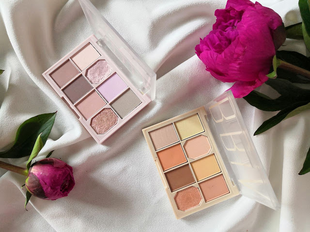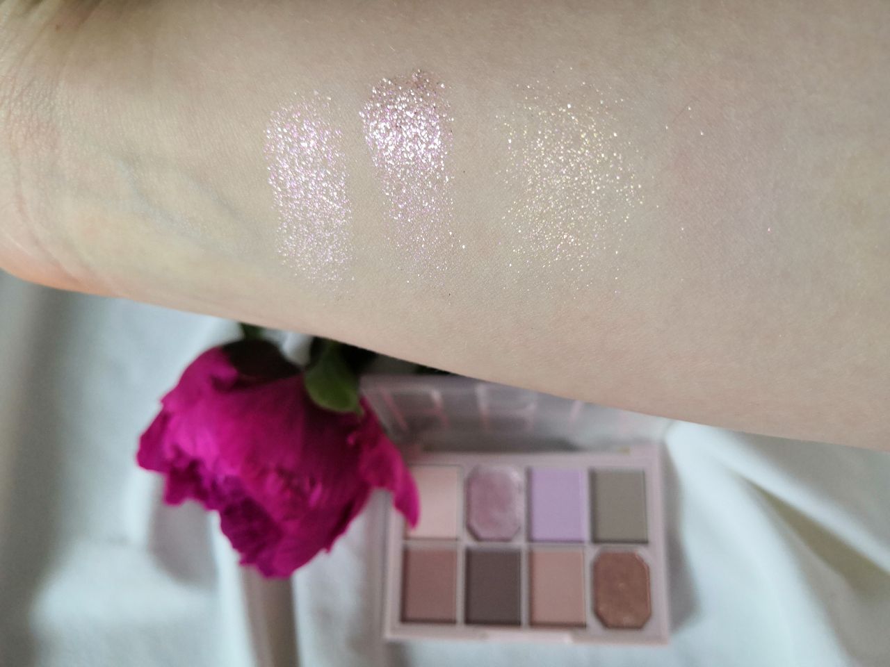 Sitten ne luomiväripaletit. Sain testiin BBIA final shadow palette 05 blind love (lila) ja 06 honey love (oranssi). Uskoin ja toivoin näiden olevan laadultaan yhtä erinomaisia, kuin aikaisemmin kehumani Trotstar. Petyin kuitenkin näiden kohdalla. Etenkin lilan paletin upeat lilat eivät olleetkaan niin pigmenttisiä kuin ajattelin ja niistä ei luomelle juurikaan jää väriä. Myös oranssin paletin kaikkein vaaleimmat sävyt katoavat ihoon, mikä tietysti harmittaa. Tummemmista sävyistä irtoaa väriä jonkin verran, mutta niissäkään pigmentti ei valitettavasti ole kovin kehuttava. Osaltani nämä jäivätkin kovin vaisuiksi, eikä edes paletin muutama glittersävy pelasta kokonaisuutta.