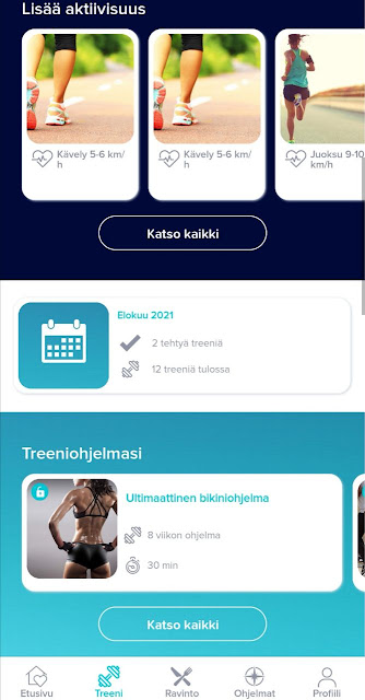 Mulla oli kesän aikana pieni tauko treenaamisesta, vaikka olenkin treenaillut melkolailla koko kesän. Enemmän on tullut tehtyä kyllä ulko juttuja kuten pitkiä pyörälenkkejä, rappujuoksuja ja koirien kanssa kävelyitä pitkin Tamperetta. Virkistävää vaihtelua, koska ehtii sitä taas talvella asettua sinne sisä saleille. Nyt on kuitenkin alkanut taas vähän hiipiä se joka syksyinen treeni-innostus oikein takavasemmalta ja siitäpä syystä haluankin esitellä teille tänään treenisovelluksen, jota olen tässä testaillut. Tuolta postauksen lopusta voit napata myös alekoodin, jolla saa lähes loppuvuodeksi ilmaiset treenit, joten käy nappaamassa se talteen ja aloita jo tänään!