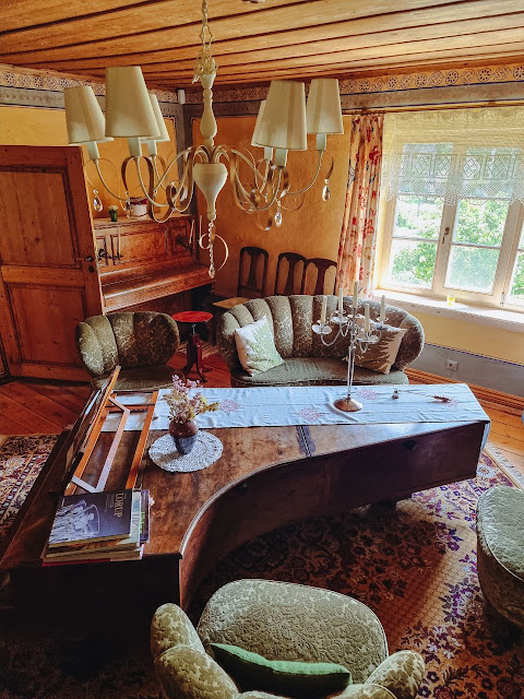 Nurka talu on aivan ihanan sympaattinen vanha kartanorakennus, joka on kunnostettu majapaikaksi. Pääkartano on noin 1890 luvulta ja pihaan on sittemmin myös tuotu aittarakennuksia, joissa pääsee myös yöpymään. Ensimmäisellä kerralla yövyin päärakennuksen sinisessä huoneessa (kuva alla) ja nyt toisella kerralla nukuttiin aittarakennuksessa. Paikan tunnelma on aivan ihana. Kartanolla on iso vehreä piha-alue ja rauhallista luontoa ympärillä. Vieressä ei nimittäin ole muita rakennuksia vaan metsää ja hyvin hoidettu pihapiiri.